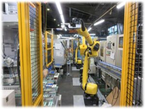 ロボット4台と工作機械や専用装置を組み合わせて、